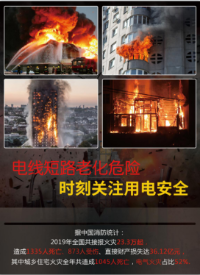 一、电线着火主要由于用电不当,应杜绝电线超负荷工作、私拉乱接拖线板,严谨外接充电等违章用电操作。