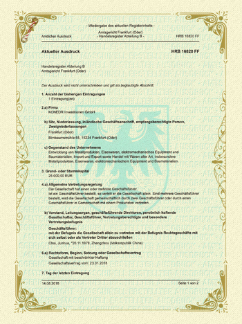 KONEDR Investitionen GmbH Adresse: Birnenmühle 65 15234 Frankfurt (Oder)